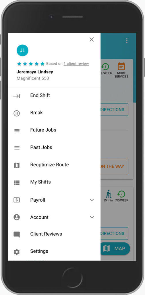 Tech will find client ratings and comments under Menu > Client Reviews.