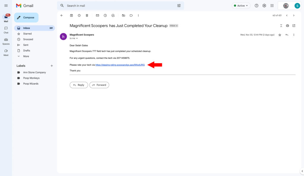 Client ratings and comments within the field tech app