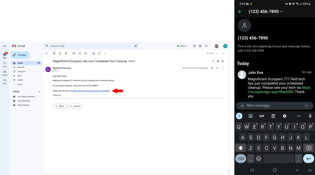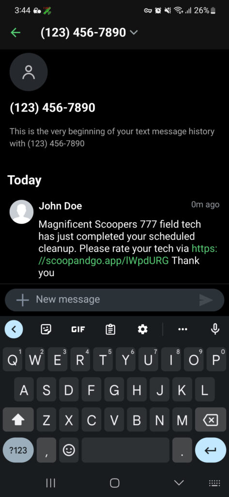 After a job is completed a client will receive notification via text or email with a link for rating and tipping your tech.