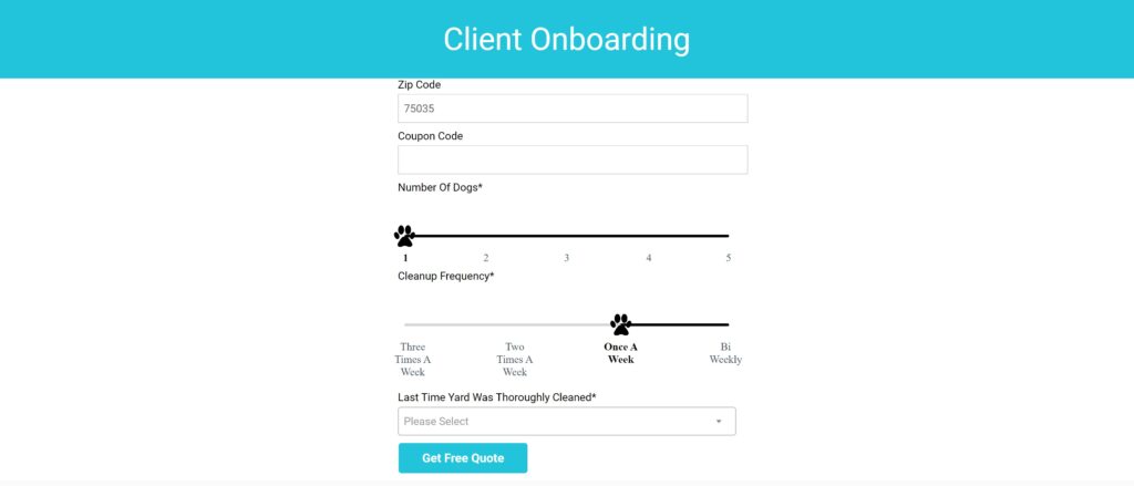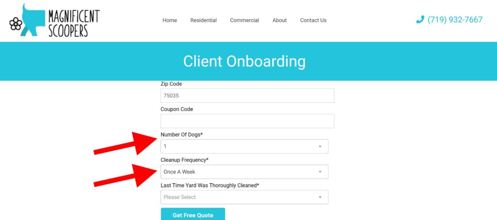 20. By default, the number of dogs and cleanup frequency will be shown as a dropdown list: