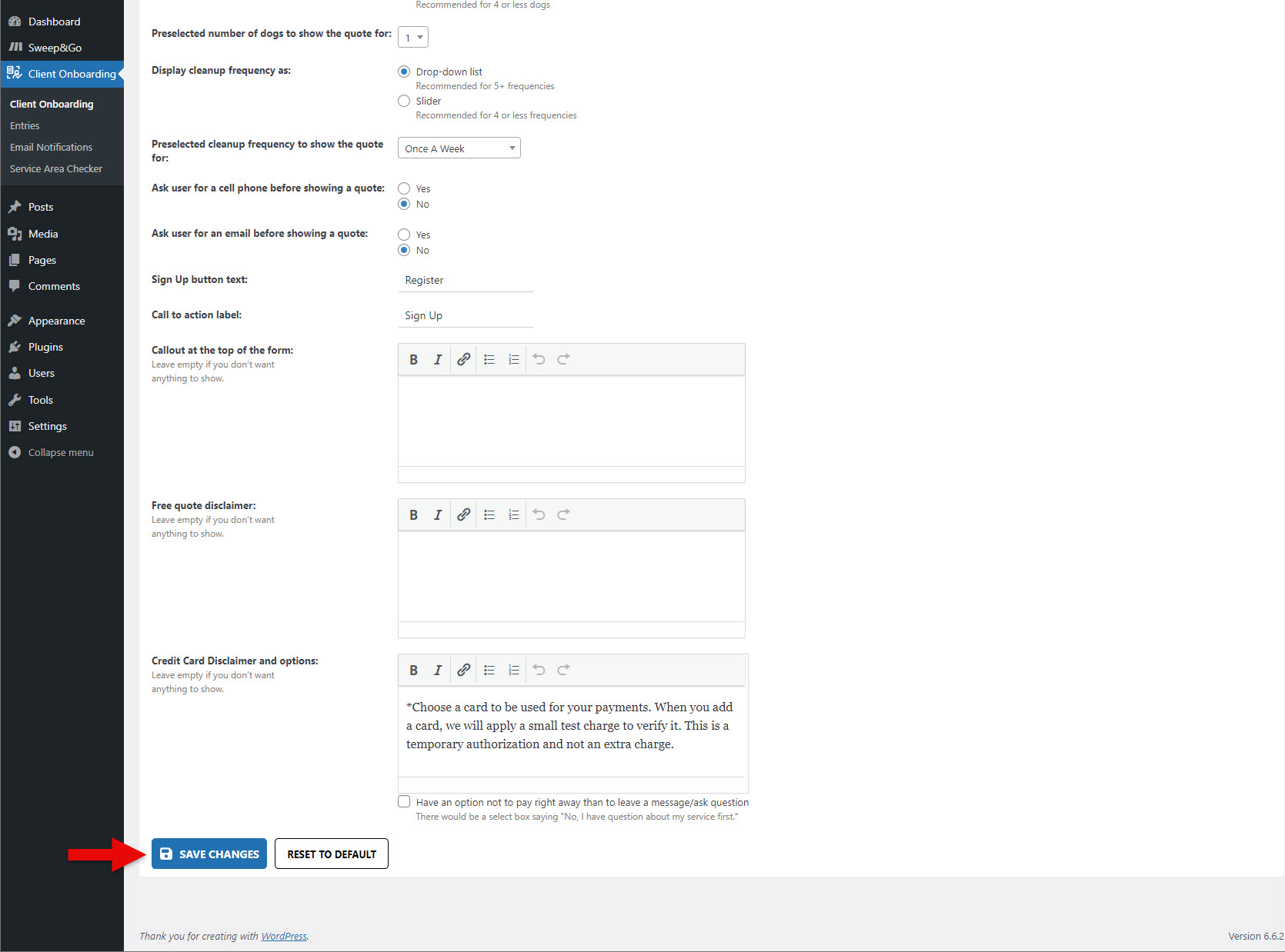 18. To show the Client Onboarding Zip Code Checker go to “Client Onboarding” > Service Area Checker, copy the shortcode and add it to your page