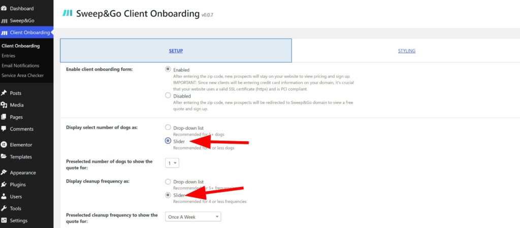 You can change this to be a slider by going to “Client Onboarding” and selecting slider for both options if you would like to:
