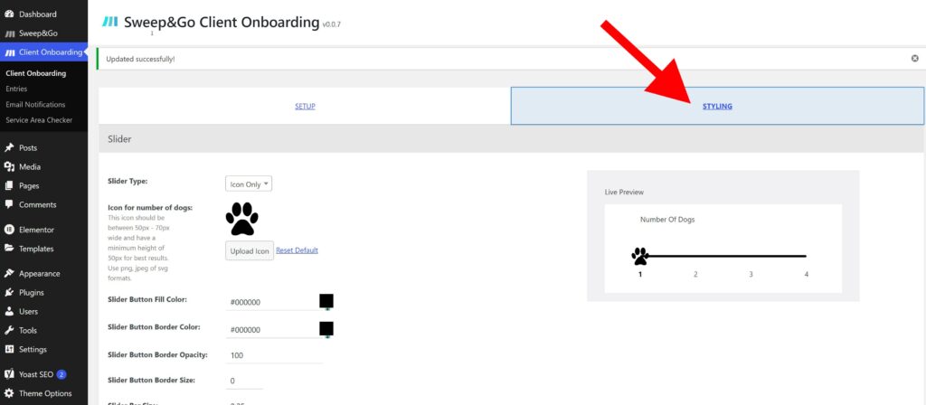 21. You may stylize the slider however you like by going to “Client Onboarding” > Styling